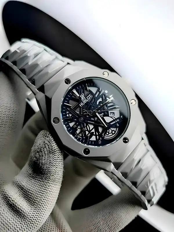 ঘড়ির ডায়ালটি স্কেলেটন ডিজাইনের হওয়ায় ভিতরের গিয়ার/মুভমেন্ট দেখা যায়—যা এটিকে আরও প্রিমিয়াম ও ইউনিক লুক দেয়।